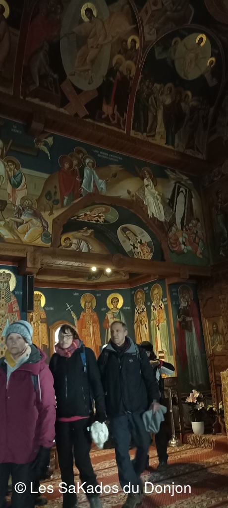 La rando de 12 km était menée avec brio par Christiane, avec un soleil qui nous a réchauffé après les moins 6 degrés du matin, visite de l'église orthodoxe roumaine .