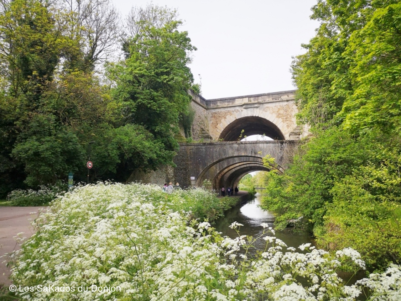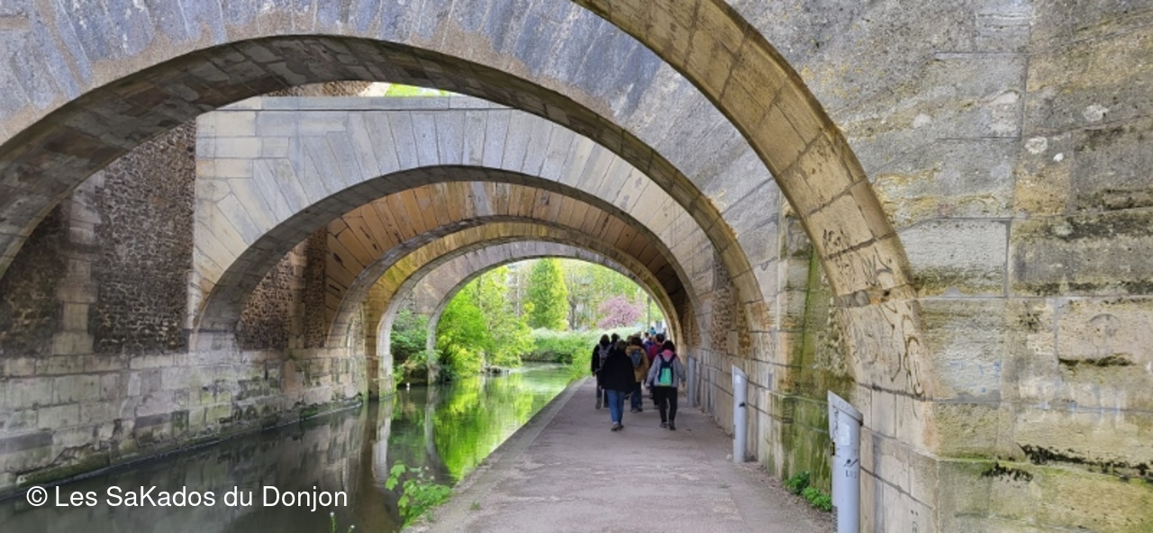 Les 19 marcheurs de la Rando Douce  ce matin 26 avril ont suivi tranquillement la rivière de l'Orge entre le château de Morsang et Juvisy, découvert un platane exceptionnel... et admiré le bel ouvrage du Pont des Belle Fontaines, avec ses 7 arches !